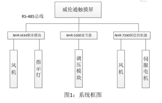 威倫通觸摸屏可實(shí)現(xiàn)系統(tǒng)的集中管理和分散控制,方便領(lǐng)導(dǎo)層的管理工作,它和NHR系列儀表之間采用RS-485通訊,具有信號(hào)傳輸距離遠(yuǎn),抗干擾能力強(qiáng),穩(wěn)定性高等特點(diǎn)。威倫通觸摸屏控制畫面如圖2所示。