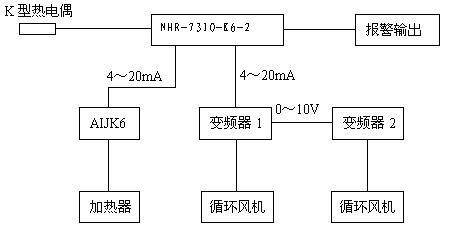 根據(jù)系統(tǒng)要求,我們選用了NHR-7300作為主溫度控制儀,系統(tǒng)結(jié)構(gòu)框圖如下圖所示:
