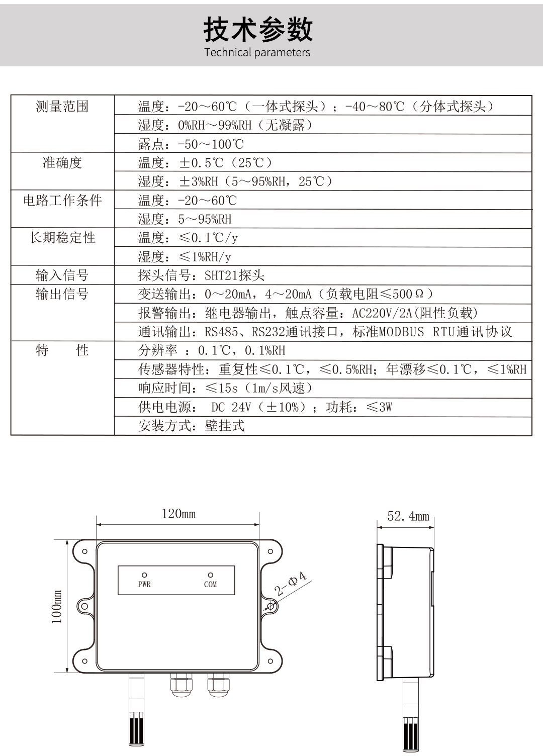 NHR-WS20系列一體化溫濕度變送器