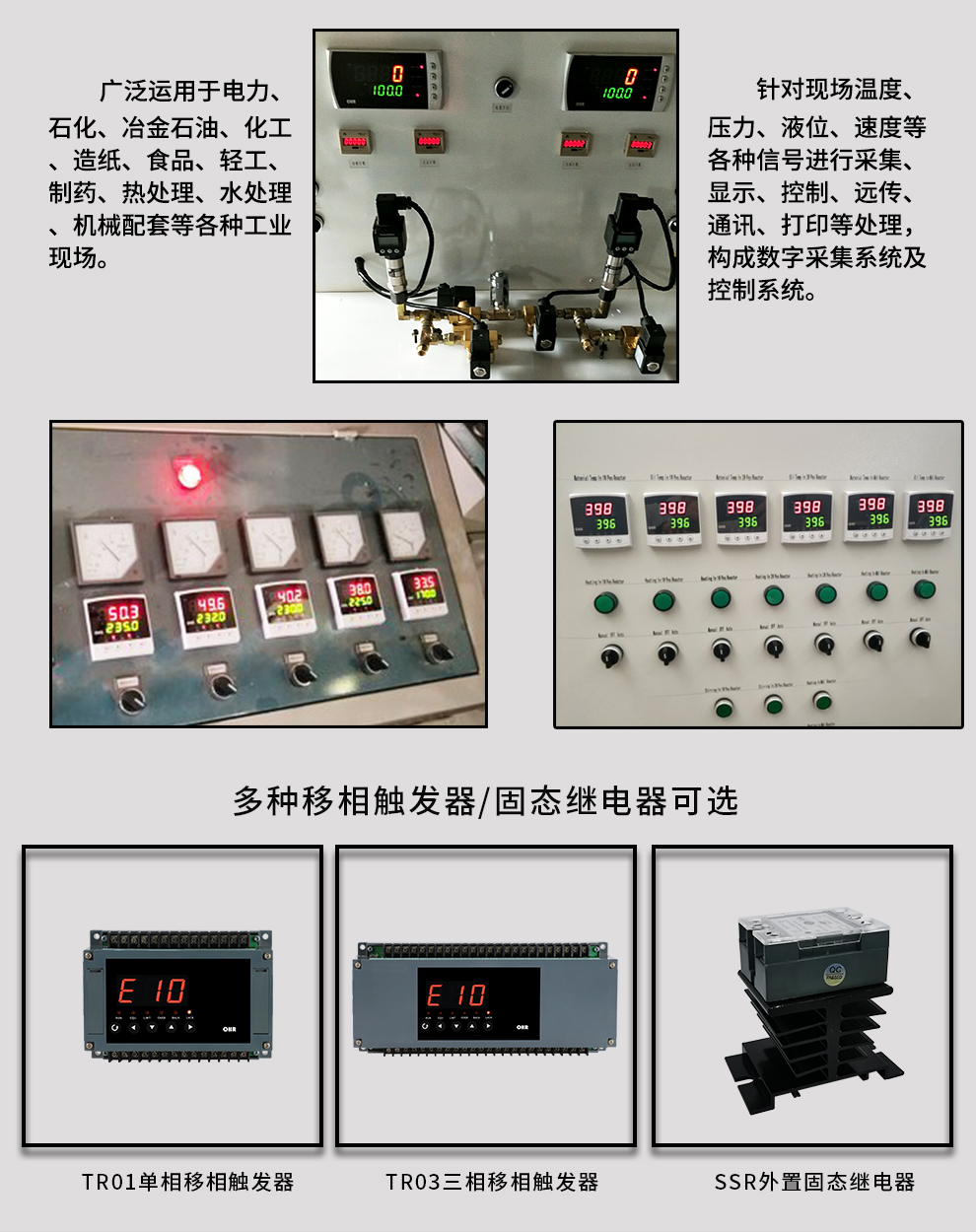 虹潤(rùn)公司是專業(yè)生產(chǎn)移相觸發(fā)器的國(guó)家專精特新“小巨人”企業(yè),生產(chǎn)的移相觸發(fā)器,具有采用光電隔離設(shè)計(jì),自動(dòng)同步功能,過(guò)流保護(hù)技術(shù),電源缺相檢測(cè),信號(hào)超限報(bào)警等特點(diǎn)。產(chǎn)品獲得巡回檢測(cè)顯示方法及裝置、儀表殼體等2項(xiàng)國(guó)家發(fā)明專利,主持起草工業(yè)過(guò)程控制系統(tǒng)用模擬輸入兩位或多位輸出儀表、物聯(lián)網(wǎng)智能溫度儀表通用技術(shù)條件等2項(xiàng)國(guó)家標(biāo)準(zhǔn)以及通信系統(tǒng)多通道數(shù)據(jù)采集控制終端規(guī)范軍用標(biāo)準(zhǔn),參與國(guó)際5G標(biāo)準(zhǔn)制定,取得外置移相觸發(fā)器等2項(xiàng)相關(guān)軟件著作權(quán)。產(chǎn)品廣泛應(yīng)用于工業(yè)溫控、電極控制、航天軍工、電爐溫控、食品醫(yī)藥等諸多領(lǐng)域。