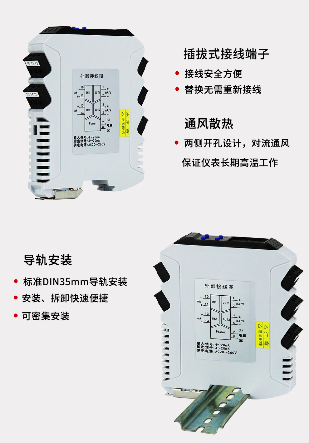 虹潤公司是專業(yè)生產隔離器的國家專精特新“小巨人”企業(yè)。生產的導軌式智能隔離器 ,具有高清顯示單元,參數(shù)可設置,寬電源供電,響應快,帶RS485通訊等特點。產品獲得信號隔離器、一種二端子模塊、無源信號隔離器等3項國家發(fā)明專利,主持起草現(xiàn)場設備工具(FDT)接口規(guī)范、工業(yè)過程測量和控制系統(tǒng)用隔離式安全柵、工業(yè)過程測量和控制系統(tǒng)用配電器等3項國家標準,以及通信系統(tǒng)多通道數(shù)據采集控制終端規(guī)范軍用標準,參與國際5G標準制定,取得智能隔離器等2項相關軟件著作權。產品廣泛應用于電力、石化,冶金、制藥、水處理、機械配套等各種工業(yè)現(xiàn)場。