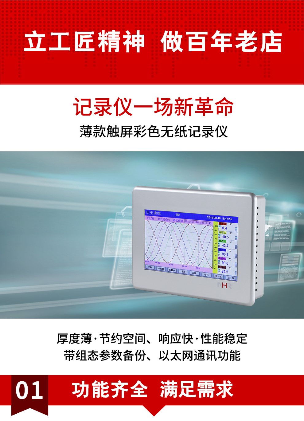 虹潤(rùn)公司是專業(yè)生產(chǎn)無(wú)紙記錄儀的國(guó)家專精特新“小巨人”企業(yè)。生產(chǎn)的觸摸屏無(wú)紙記錄儀,具有觸摸大屏顯示,多通道全切換輸入,數(shù)據(jù)記錄與轉(zhuǎn)存, RS485/以太網(wǎng)通訊,5/7/9英寸可選等特點(diǎn)。產(chǎn)品獲得一種無(wú)紙記錄儀、數(shù)據(jù)采集控制工作站、智能化控制器、巡回檢測(cè)顯示方法及裝置等4項(xiàng)國(guó)家發(fā)明專利,主持起草物聯(lián)網(wǎng)智能記錄儀表通用技術(shù)條件、物聯(lián)網(wǎng)智能溫度儀表通用技術(shù)條件等2項(xiàng)國(guó)家標(biāo)準(zhǔn),通信系統(tǒng)多通道數(shù)據(jù)采集控制終端規(guī)范軍用標(biāo)準(zhǔn),以及空間數(shù)據(jù)與信息數(shù)據(jù)傳輸系統(tǒng)等2項(xiàng)航天標(biāo)準(zhǔn),參與國(guó)際5G標(biāo)準(zhǔn)制定,取得觸摸屏彩色無(wú)紙記錄儀等4項(xiàng)相關(guān)軟件著作權(quán)。產(chǎn)品廣泛應(yīng)用于冶金、石化、電力、制藥、新能源、現(xiàn)代農(nóng)業(yè)、生產(chǎn)過(guò)程等諸多領(lǐng)域。