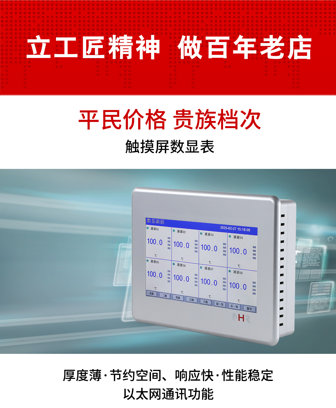 虹潤(rùn)公司是專業(yè)生產(chǎn)無(wú)紙記錄儀的國(guó)家專精特新“小巨人”企業(yè)。生產(chǎn)的觸摸屏數(shù)顯表,具有觸摸大屏顯示,多通道全切換輸入,通道間隔離,RS485/以太網(wǎng)通訊,5/7/9英寸可選等特點(diǎn)。產(chǎn)品獲得無(wú)紙記錄儀、數(shù)據(jù)采集控制工作站、智能化控制器、巡回檢測(cè)顯示方法及裝置等4項(xiàng)國(guó)家發(fā)明專利,主持起草物聯(lián)網(wǎng)智能記錄儀表通用技術(shù)條件、物聯(lián)網(wǎng)智能溫度儀表通用技術(shù)條件等2項(xiàng)國(guó)家標(biāo)準(zhǔn),通信系統(tǒng)多通道數(shù)據(jù)采集控制終端規(guī)范軍用標(biāo)準(zhǔn),以及空間數(shù)據(jù)與信息數(shù)據(jù)傳輸系統(tǒng)等2項(xiàng)航天標(biāo)準(zhǔn),參與國(guó)際5G標(biāo)準(zhǔn)制定,取得觸摸屏彩色無(wú)紙記錄儀等4項(xiàng)相關(guān)軟件著作權(quán)。產(chǎn)品廣泛應(yīng)用于冶金、石化、電力、制藥、新能源、現(xiàn)代農(nóng)業(yè)生產(chǎn)過(guò)程等諸多領(lǐng)域。