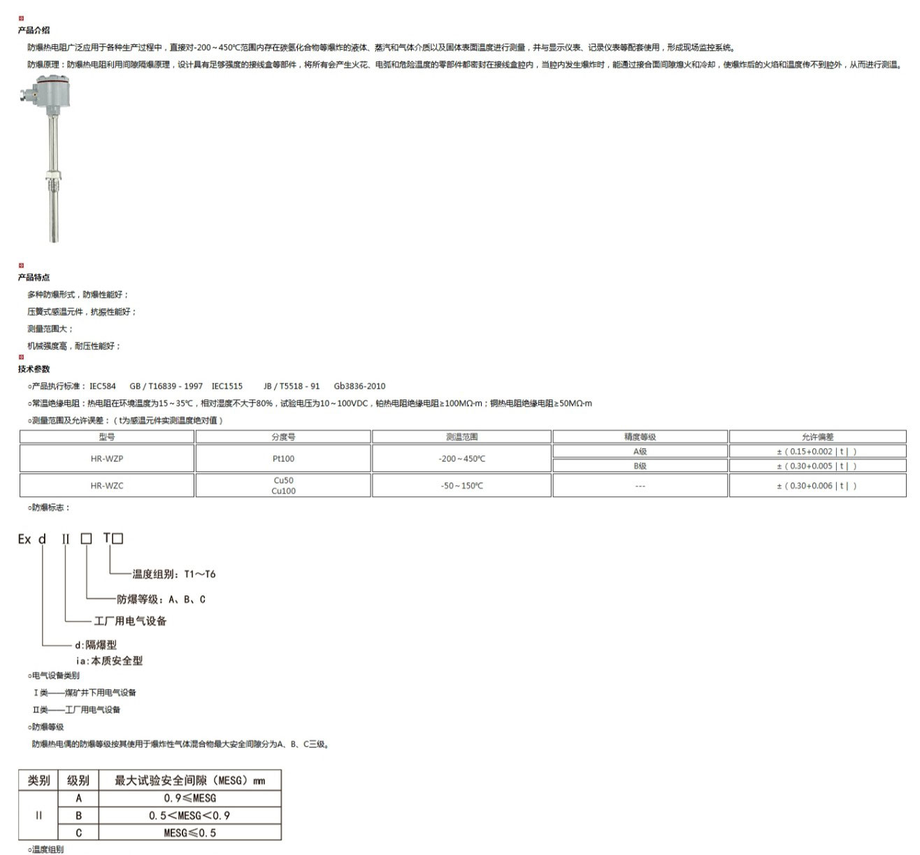 防爆熱電阻廣泛應(yīng)用于各種生產(chǎn)過(guò)程中,直接對(duì)-200~450℃范圍內(nèi)存在碳?xì)浠衔锏缺ǖ囊后w、蒸汽和氣體介質(zhì)以及固體表面溫度進(jìn)行測(cè)量,并與顯示儀表、記錄儀表等配套使用,形成現(xiàn)場(chǎng)監(jiān)控系統(tǒng)。